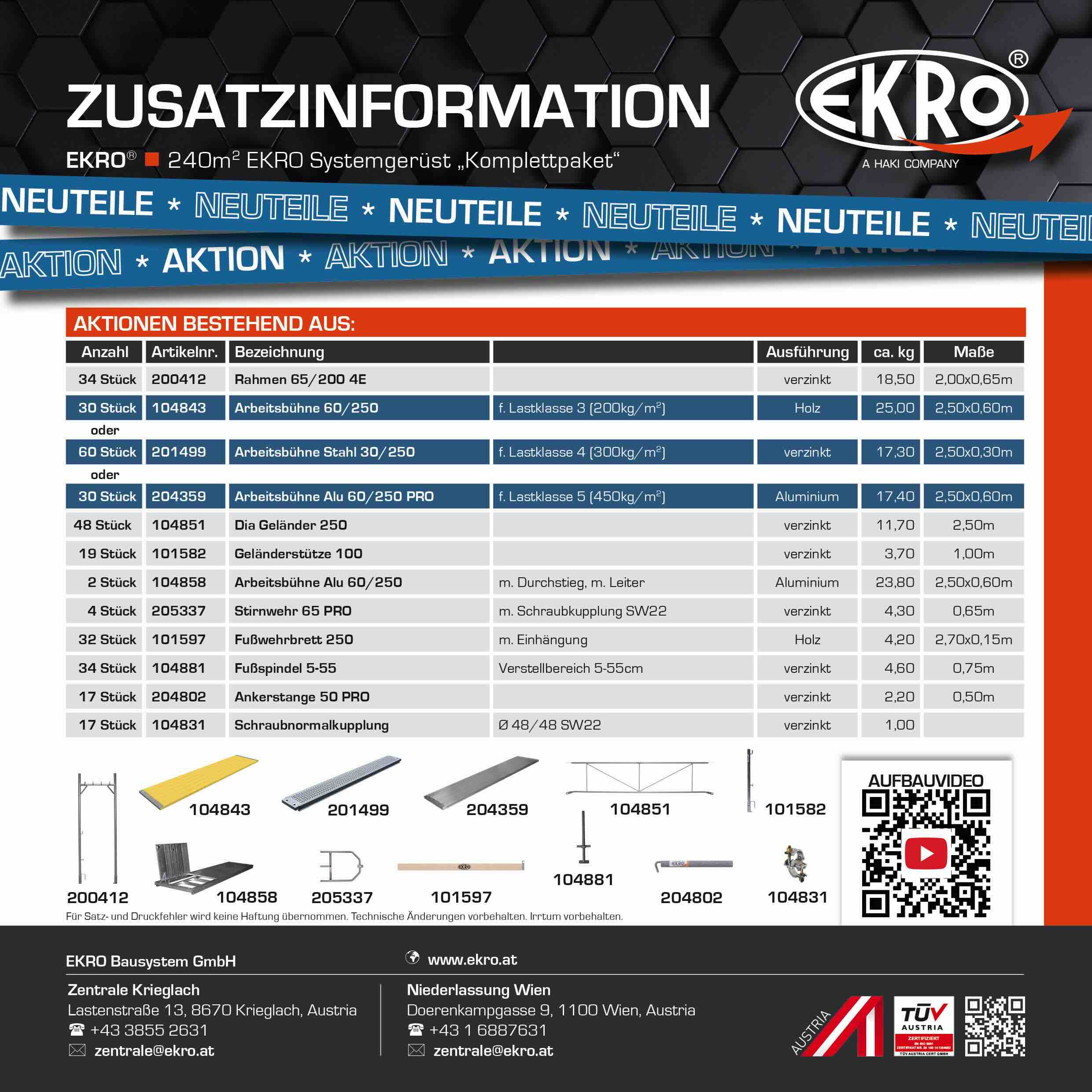 240m² EKRO Systemgerüst m. Arbeitsbühnen Alu